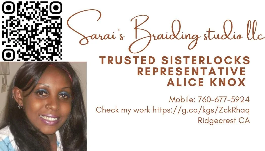 SARAI'S BRAIDING STUDIO LLC & HAIR SUPPLY 751 S. RICHMOND RD RIDGECREST CA 93555 760.677.5924